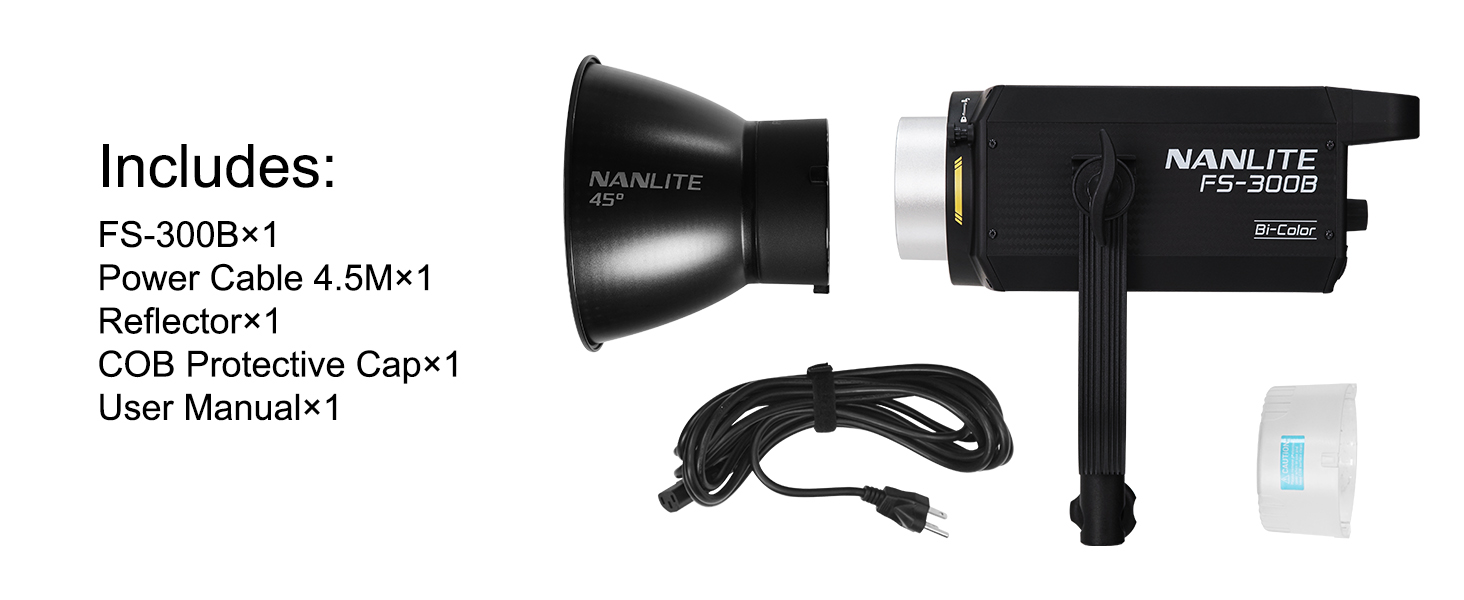 FS-300B adopts a professional COB to stand out in terms of illuminance from the similar products in the market. The output is already huge with the bare head, and can increase enormously when attached with the included reflector, making it an efficient lighting solution for photography, live streaming and content creation.