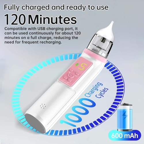 - Convenient & Easy to Use: Our nose sucker for newborn equipped with a 600mAh battery and Type-C fast charging, it provides up to 120 minutes of use. The ergonomic design and lightweight 190g body make it easy to hold and operate.