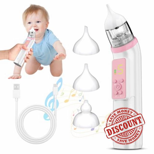 Nasal Aspirator Baby Electric, 5-Level Suction Adjustment Nose Suckers, IP65 Waterproof Electric Nose Cleaner Portable Easy-to-Clean & 3 nozzles with Soothing Music