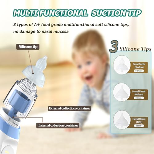 Nasal Aspirator Baby , Electric and Rechargeable Nose Suckers , Music & Light Soothing, with 5 Adjustable Suction Levels and 3 Silicone Nozzles, for Baby