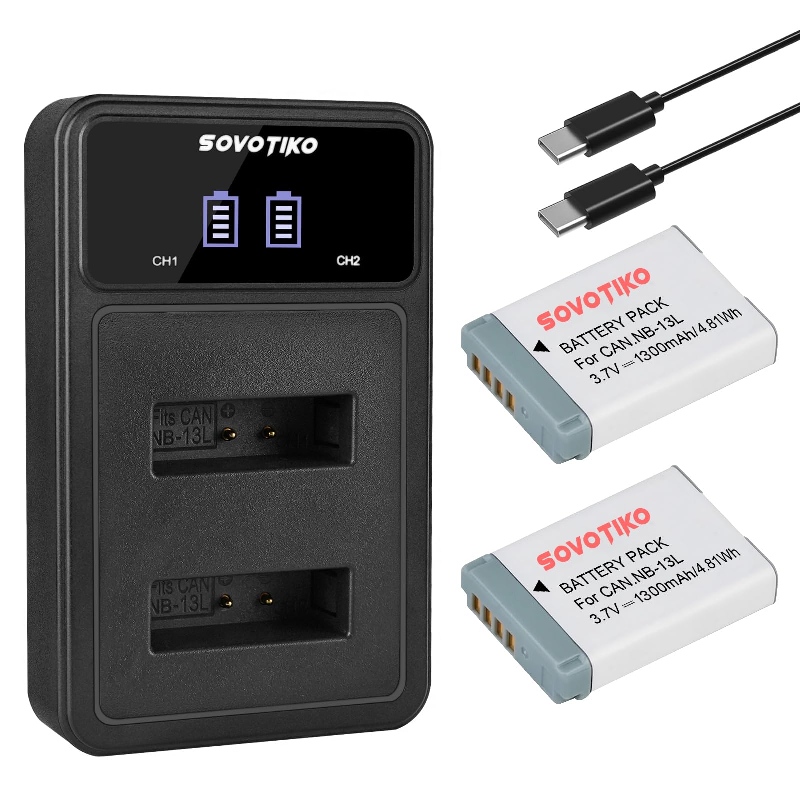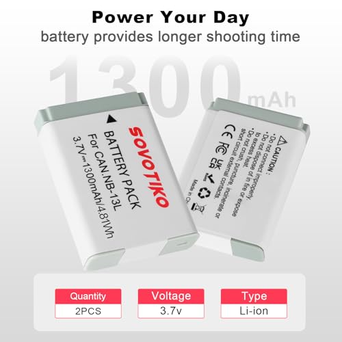 - Large Capacity For Unlimited Shooting: SOVOTIKO 2-pack 1300mAh NB-13L batteries can give your camera up to two times the shooting time when fully charged, so you will not miss any wonderful moments and record them forever.