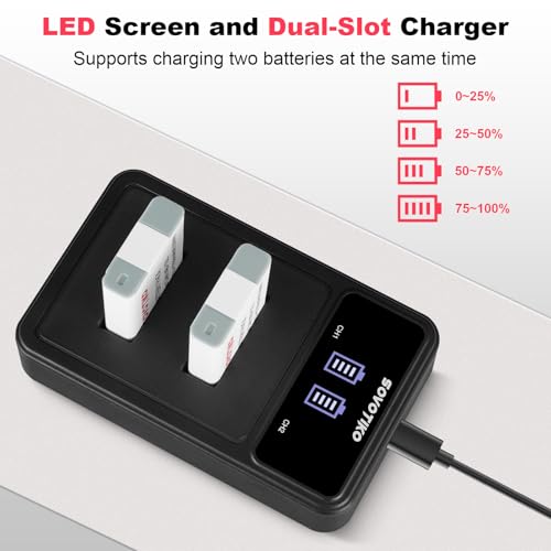 - Dual-Slot Charger Design and Type-C Interface: The SOVOTIKO NB-13L battery charger comes with a Type-C port, which can be charged via a Type-C cable. In addition, the charger's dual-slot design allows you to charge two batteries at the same time.