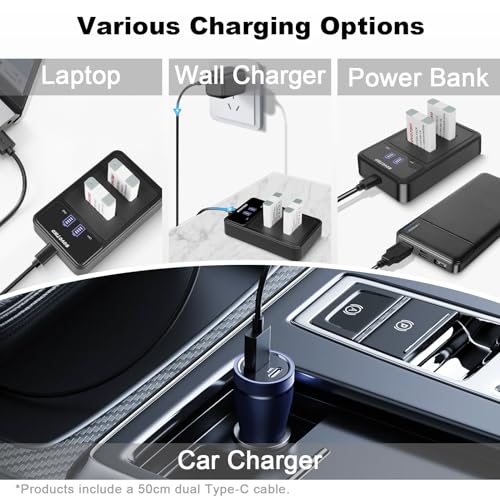 - Package Includes: 2 × NB-13L batteries, 1× 2-slot NB-13L PD fast charger, 1× Type-C Cable.