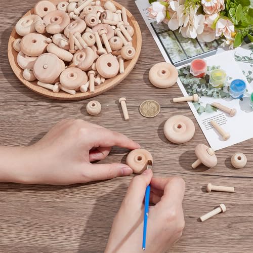 - Unfinished Wheels & Axle Pegs: You will receive 60 pcs wooden wheels and 60 pcs axle pegs. The surface of these wheels and sticks are unfinished, you could do paintings or sculpture on the wheels to craft your own special wooden wheels or crafts!