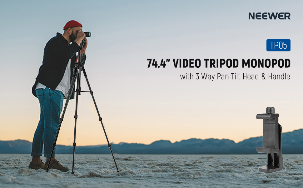 NEEWER Basics TP05 74″ Video Tripod Monopod, 3 Way Pan Tilt