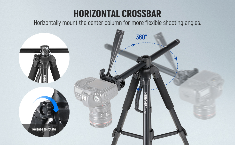 【Versatile Center Column】 You can horizontally mount the center column and swivel it for overhead photography and flat lay shots. Or, remove the central column and directly use it as a monopod. The 4 section tripod legs offer a 23.6"-74.4"/60-189cm height range. A cleaning cloth is included for daily maintenance