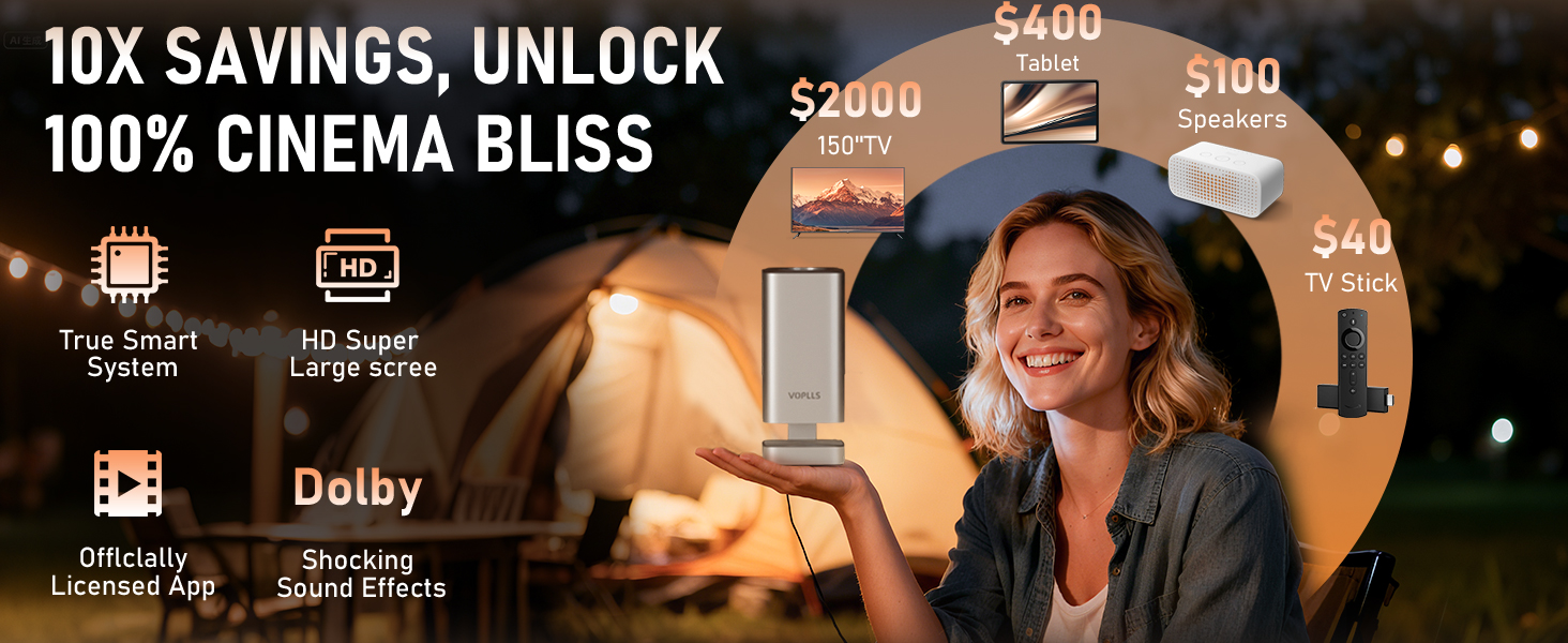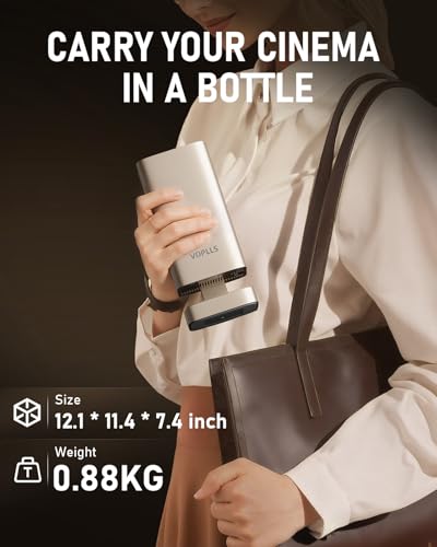 - [Pocket-Sized Luxury, Cinema On the Go] The VOPLLS mini 4k Portable Phone Projector weighs a mere 0.8kg, making it as portable as a water bottle. It projects a 40 to 200-inch screen and supports 210° free rotation, turning any flat surface—be it a bedroom ceiling, tent, or office wall—into a distortion-free private giant screen. Perfect for impromptu entertainment on trips or professional presentations at home, it blends sophisticated technology with portable design. Your personal 4K cinema is here to redefine the beauty of audiovisual entertainment