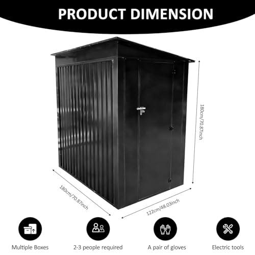 - Easy to assemble: All parts of the metal outdoor storage shed are pre-cut and pre-drilled, labelled with marking numbers.Holes and labelled with marking numbers. It is recommended to assemble it on a level floor and not to tighten all the screws during assembly.All screws should be tightened until the whole project is completed. The protective film is not recommended to be peeled off and can resist oxidation.