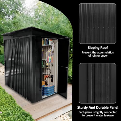 NEW Outdoor Storage Shed Garden Utility Tool Storage House Backyard Lawn with Sliding Door, Apex and Pent Roof for Patio Backyard Bike Tool All-Weather (Black-6 wide*4 depth-Pent)