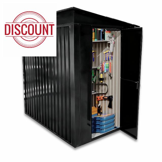- Ventilation and UV protection:, Equipped with vents to increase lighting and airflow; UV protected line galvanised steel will help to keep the steel storage shed weatherproof at all.The sloping roof design not only increases the use area, but also prevents rainwater from gathering at the top for a long time. Special design of air vents to prevent any lack of air inside. Pad-lockable doors give easy access to your stored items and enhance the safety.