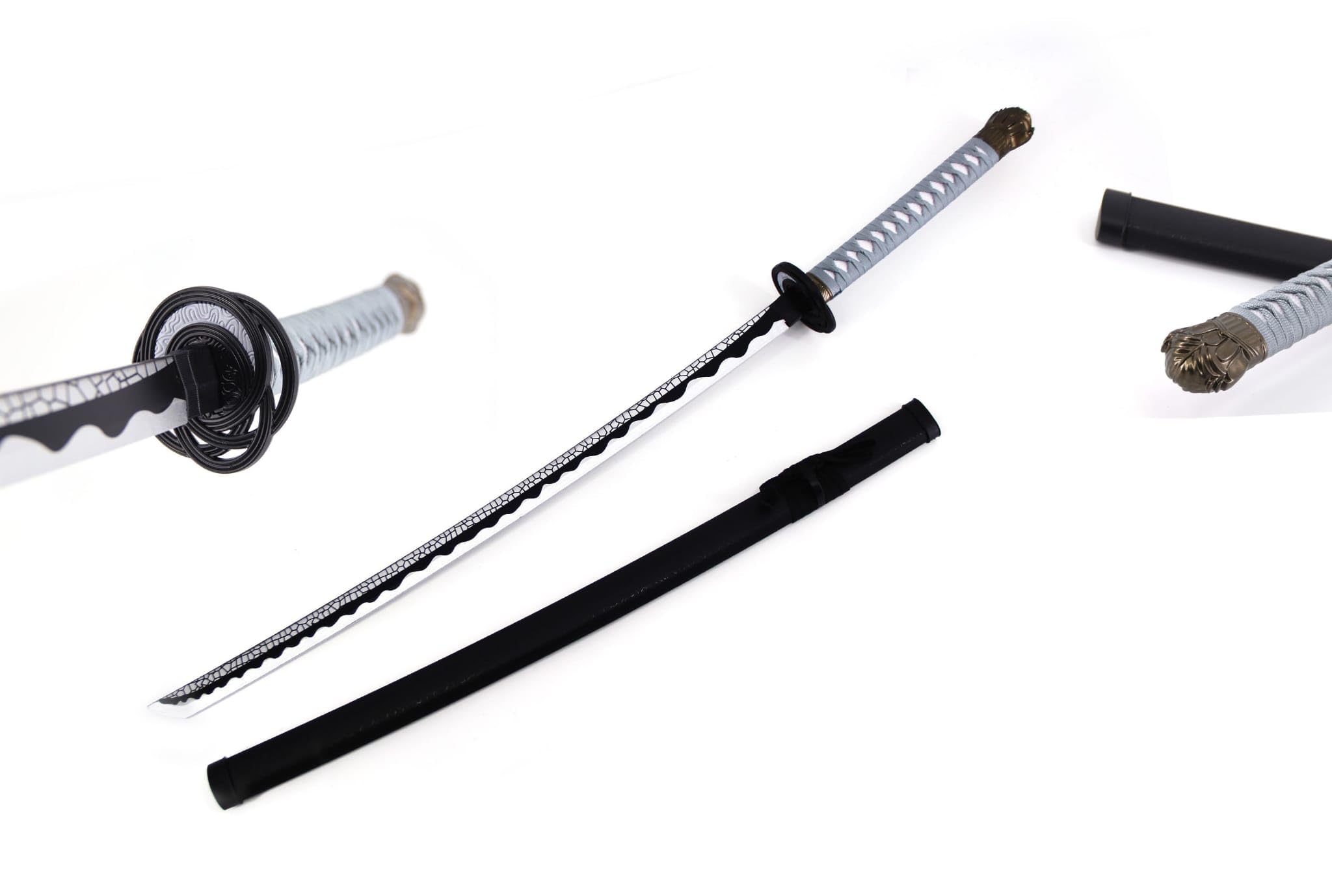 - Lightweight wooden construction with a traditional curved katana design