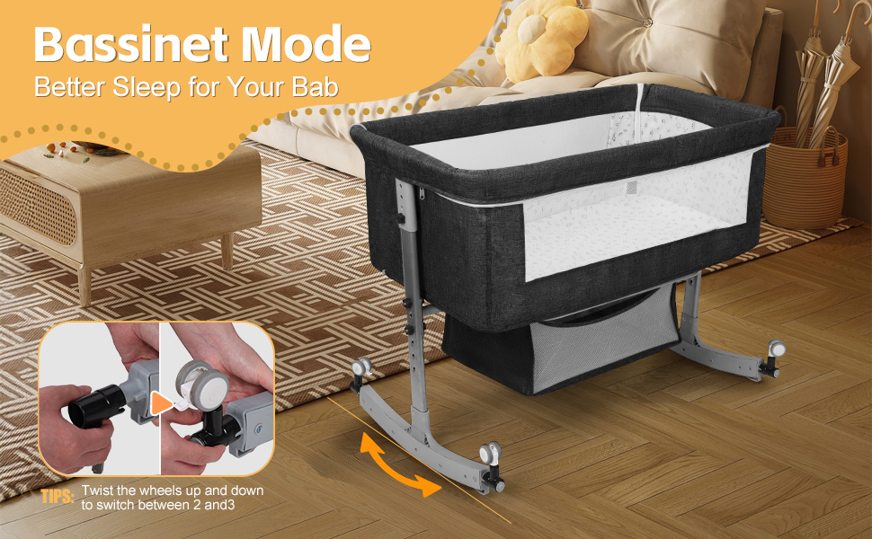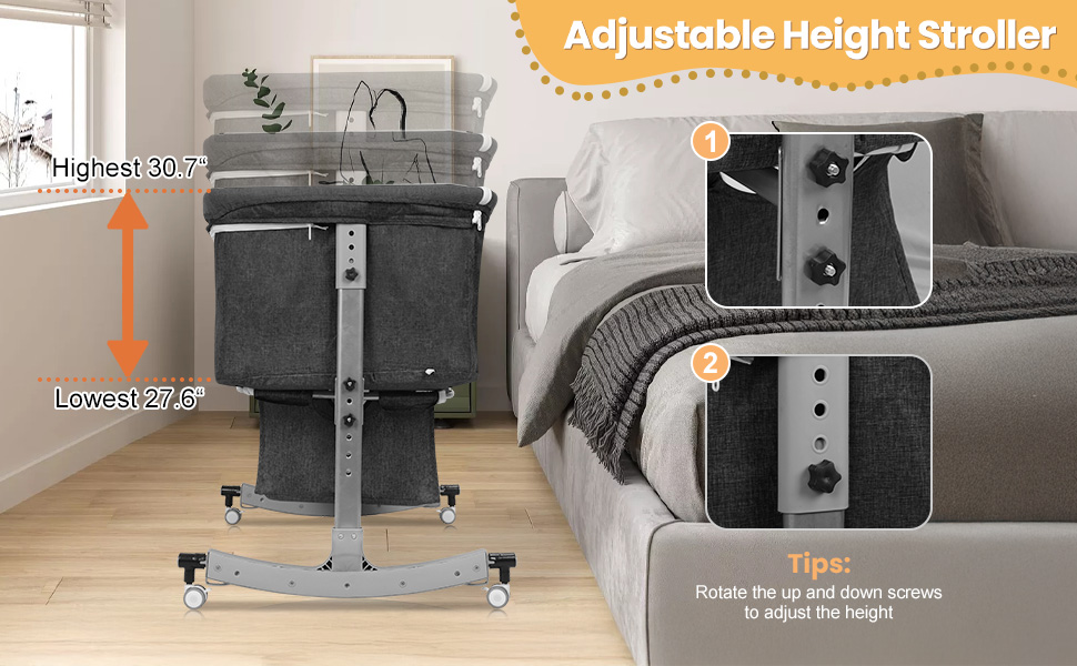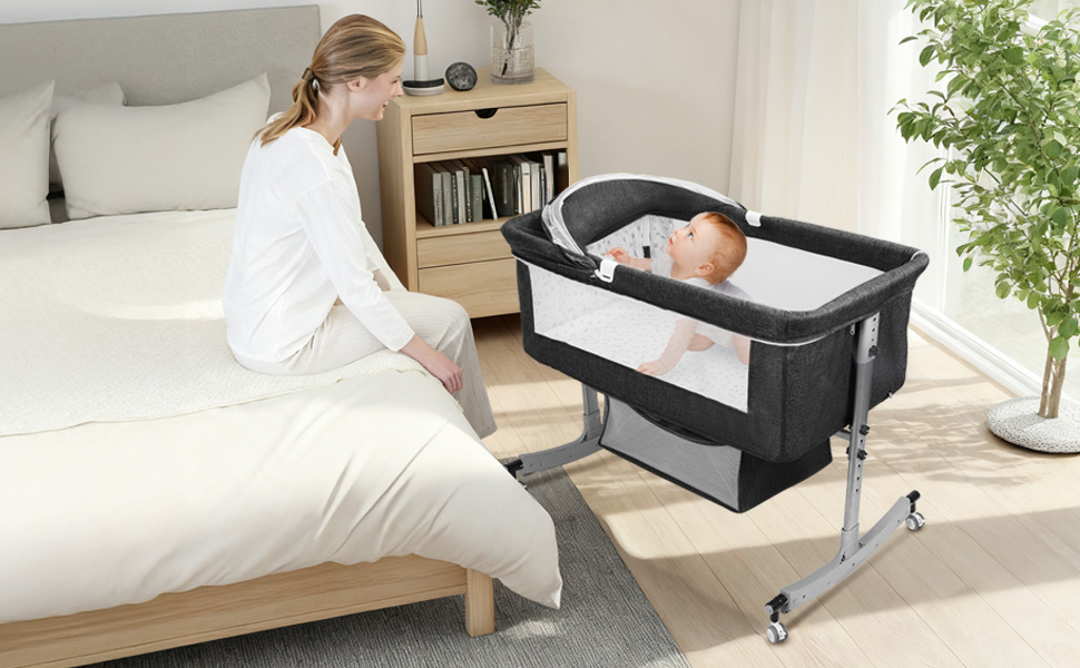 - 【6 Height Adjustments for Perfect Fit】 Features 6 adjustable height levels (from 80cm to 90cm), allowing you to seamlessly align this bedside cot with your adult bed or sofa for safe and convenient co-sleeping and nighttime feeding.