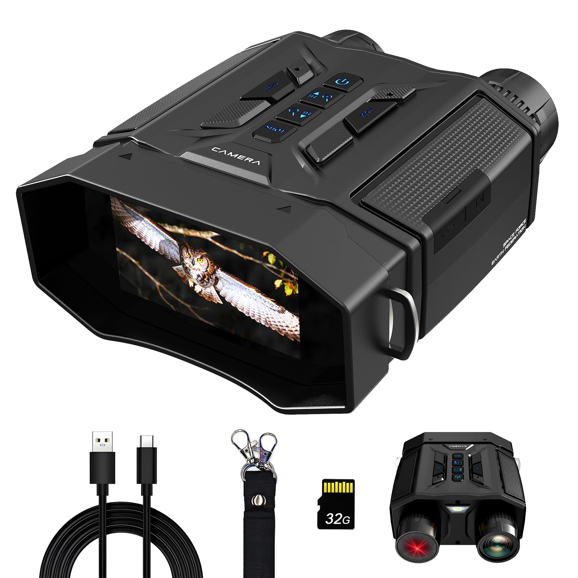 - 【Long-Lasting 4000mAh Battery & All-in-One Ready Kit】Engineered for extended outdoor use, our night vision binoculars come with a high-capacity 4000mAh rechargeable lithium battery. Enjoy hours of continuous operation for hunting, camping, or wildlife observation without worrying about frequent recharging. The package includes a 32GB memory card, so you can start recording immediately. This complete ready kit makes it an excellent and convenient Christmas gift for men, husband, or boyfriend. Say goodbye to AA batteries and embrace an eco-friendly, cost-effective solution for all your nighttime activities