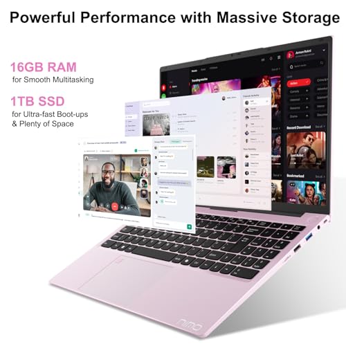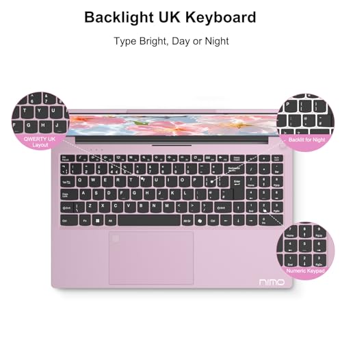 NIMO 15.6″ Laptop Computer Rose gold: Intel N100(Beat N95), Full HD Screen, 16GB RAM, 1TB SSD, Win 11 Home, Wi-Fi 6, Fingerprint, 65W PD, Backlit keyboard, Portable Lightweight Notebook
