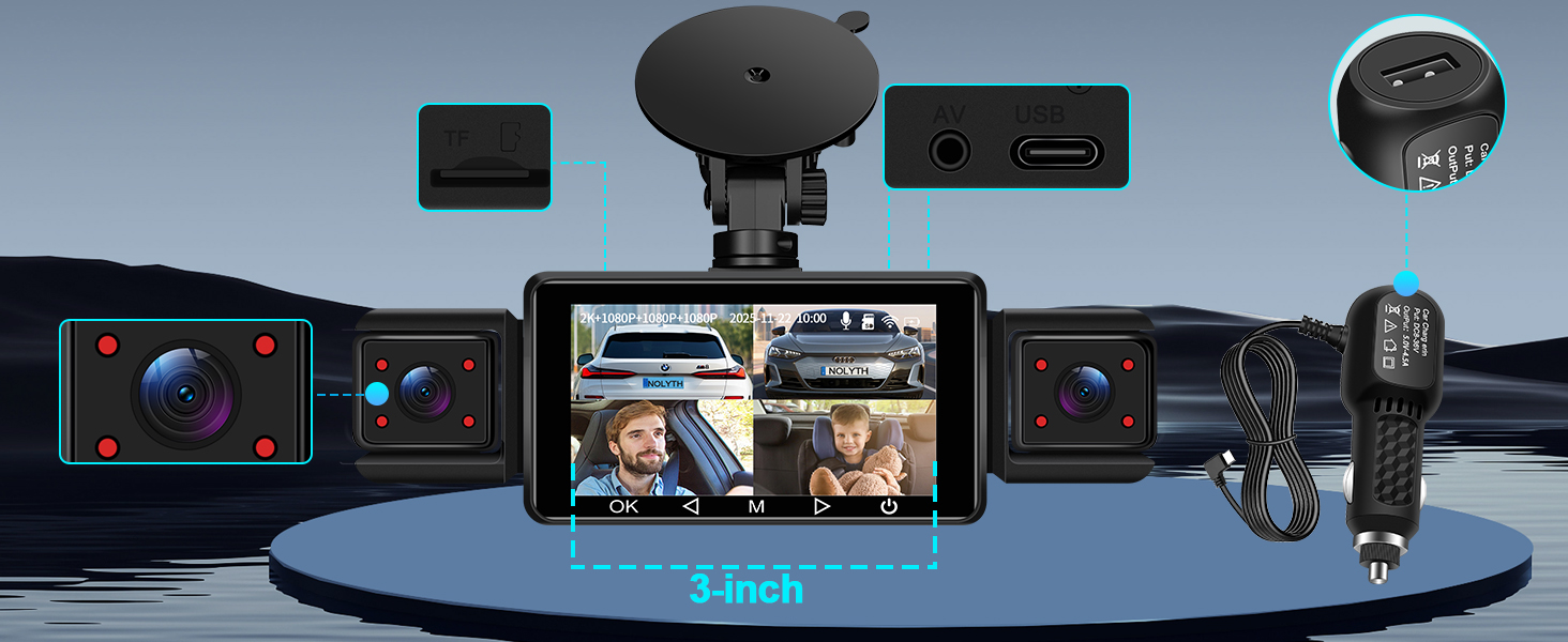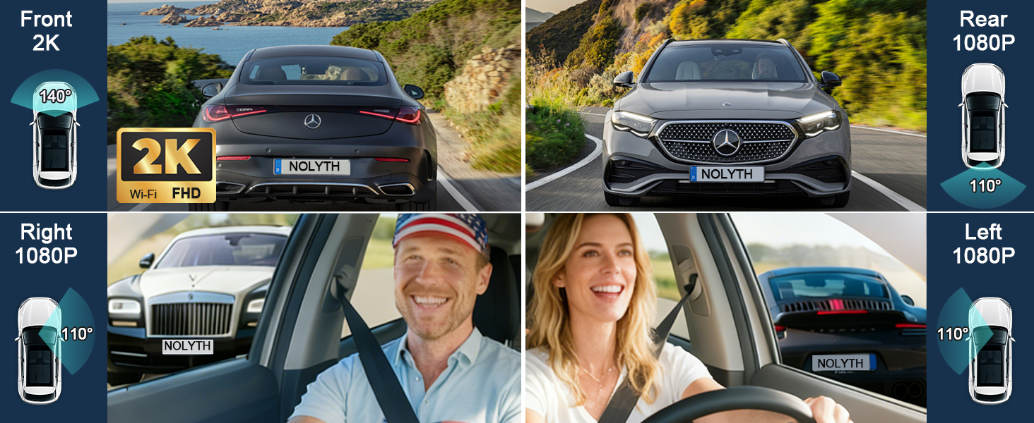 NOLYTH Dash Cam Front and Rear 4-Channel: Front 2K + Rear
