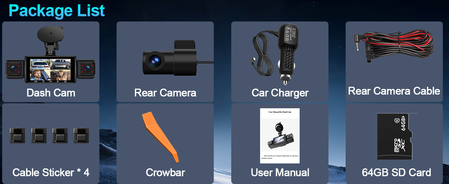 - Important Notes: 1. Format the micro SD card before first use. 2. This dash cam front and rear is not a wireless device and requires a power connection. 3. The Wi-Fi range is 3-5 meters and a remote connection is not supported. 4. The dash cam should be kept continuously powered during use; the included car charger is recommended for this purpose.5. Our professional customer service team provides technical support and after-sales service. Feel free to contact us via email with any enquiries