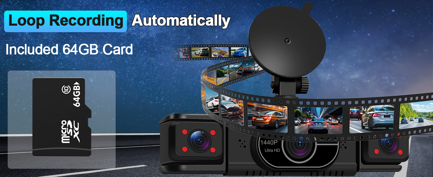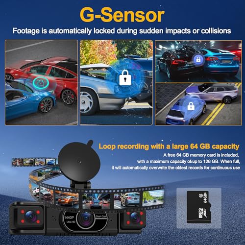 - G-Sensor and Loop Recording: This car dash cam is ready to use straight away as its built-in high-performance 64 GB SD card, which has been tested for stable 2K/1080p recording with zero frame drops. Built-in G-sensor automatically locks videos in the event of a collision, saving the footage to a secure zone to prevent it from being overwritten. When the storage is full, new recordings automatically overwrite the oldest footage to ensure seamless loop recording. Supports up to 128 GB SD cards
