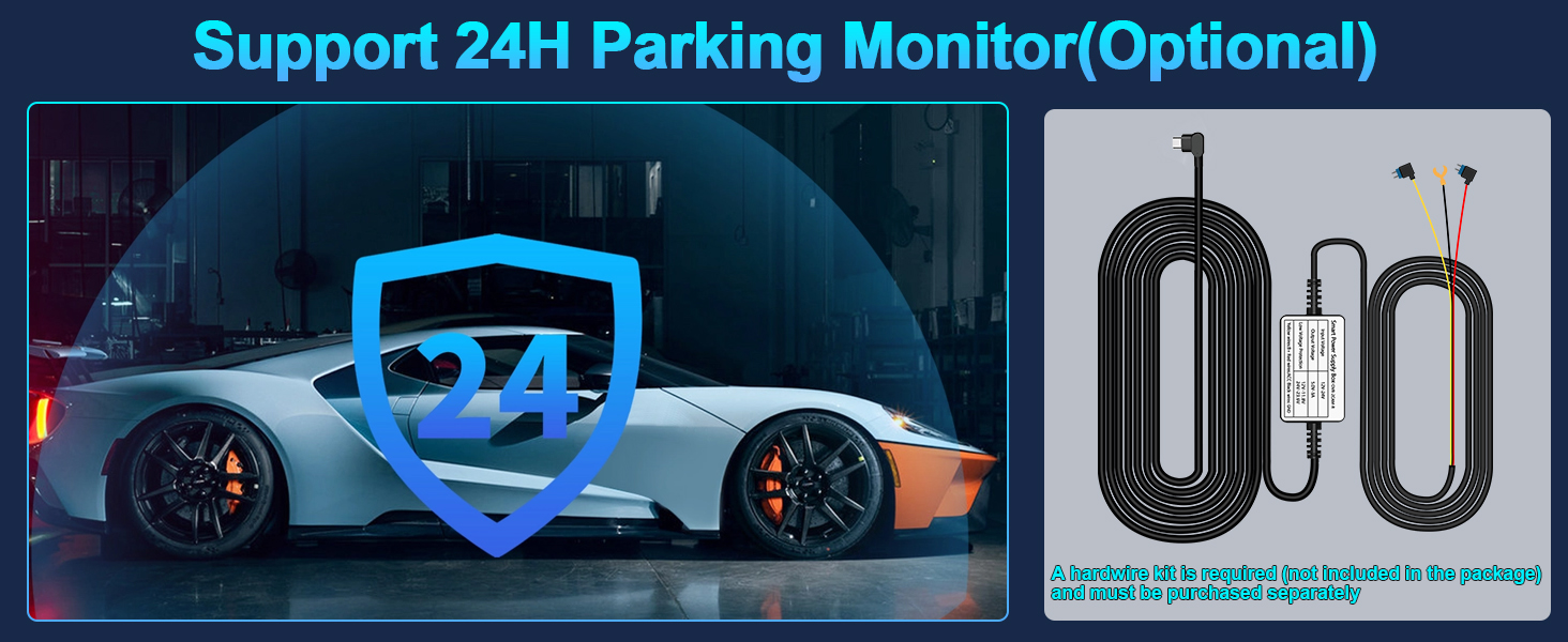 - 24H Parking Monitoring: When paired with the hardwiring kit, the dash camera detects sudden vibrations while parked and automatically activates recording to deter theft or vandalism. Please note that enabling 24h parking monitoring requires the separate purchase of a dedicated hardwiring kit. This dash cams for cars come with a USB-C car charger cable with a USB port, enabling you to charge both the car camera dash cam and your phone simultaneously