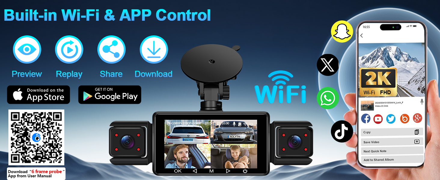 - Built-in Wi-Fi and 3" Display: The NOLYTH dash cam front and rear boasts built-in Wi-Fi and connects easily to your Android or iOS phone via Wi-Fi, enabling real-time monitoring and simplifying insurance claims by saving critical footage, even at high speeds. You can find both apps on the Google Play Store and the Apple Store. Its 3" IPS display provides crystal-clear visuals. For new momther, it is an excellent car camera for baby