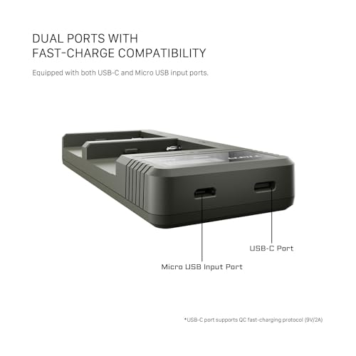 - The integrated LCD display provides real-time charging status for each battery, giving you confidence and clarity during every shoot.
