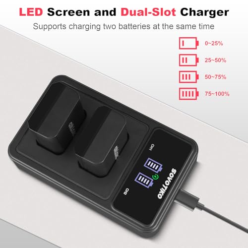 - PD Fast Charging And Dual Slot Charger Design: The SOVOTIKO NP-FW50 battery charger has a USB-C port that supports the PD protocol. When your adapter power is greater than 20w, you can unlock faster charging speeds. In addition, the dual-slot design allows you to charge two batteries at the same time.