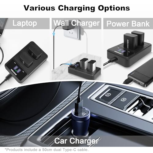 - Package Includes: 2 × NP-FW50 batteries, 1× 2-slot NP-FW50 PD fast charger, 1× Type-C Cable.
