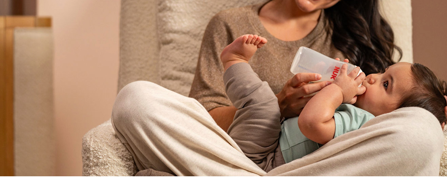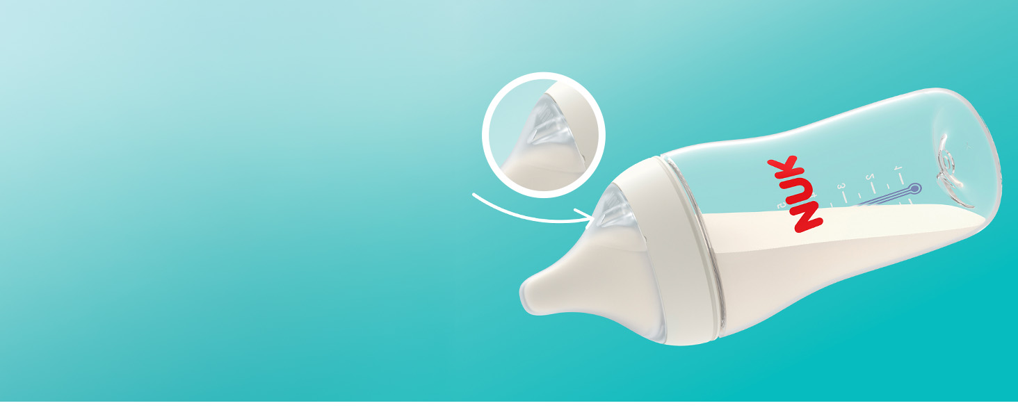The NUK anti-colic air system promotes calm, natural drinks, meaning less air gets into baby's tummy.