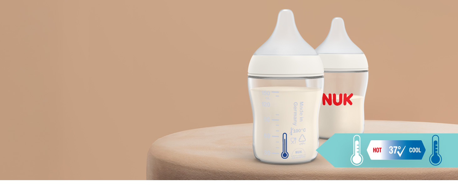 Take the guesswork out of preparing milk; the indicator scale on the bottle changes from blue to white if its contents are too hot.*