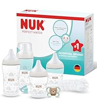 Ensure your baby gets the best start with this NUK Perfect Match Perfect Set, featuring 3 Perfect Match baby bottles and a Perfect Match Air Soother. The NUK Perfect Match Baby Bottle is a safe choice when considering baby essentials for newborn care. Designed to closely mimic the feel of breastfeeding, this innovative bottle helps support a gentle transition between breast and bottle feeding for both baby and parent. The soft and flexible bottle teat is made from skin-like silicone that adapts to baby’s natural way of feeding. Paired with a soft, wide lip rest, it encourages instinctive latching – ideal for families moving from breast to bottle and back without disrupting feeding routines. NUK’s trusted anti colic air system reduces air intake during feeding. Fewer bubbles means fewer tummy upsets, less gas and calmer feeds. The NUK Perfect Match Air Soother is specially designed to soothe while protecting baby’s delicate skin. With extra-large air openings, this soother allows maximum airflow around the mouth, helping to reduce moisture build-up and prevent drool rash. The orthodontic shape of NUK soothers has been carefully developed to minimise pressure on the teeth and jaw, supporting natural oral development as babies grow**. With an impressive 95% baby acceptance rate***, these soothers offer comfort when it’s needed most, especially helpful during bedtime, teething, or moments of change.