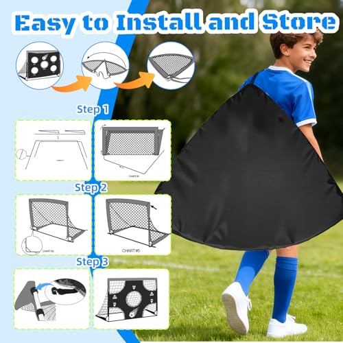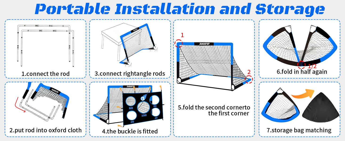 Foldable and Easy to Assemble: Complete with its own triangular storage bag, the football goals for kids requires no complicated manoeuvres—simply fold it up neatly. Whether you're carrying it to the park or loading it into the car for a trip to the countryside, it's incredibly convenient to take along.