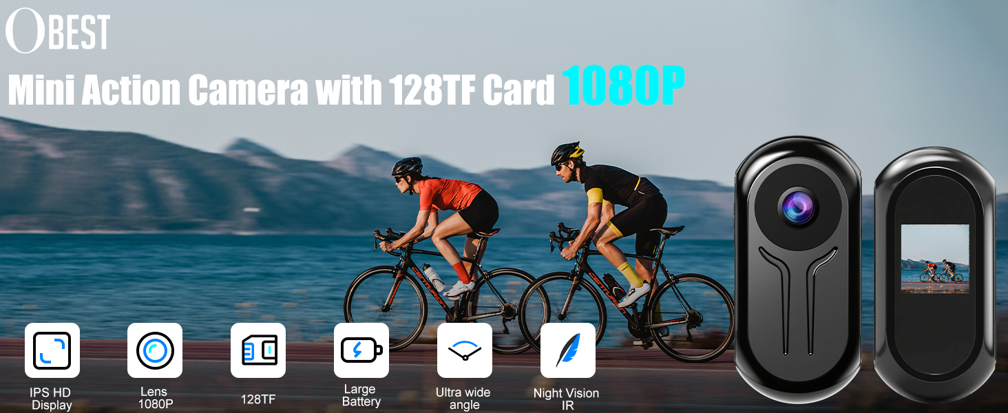 OBEST Mini Thumb Action Camera POV 1080P with 128GB Card
