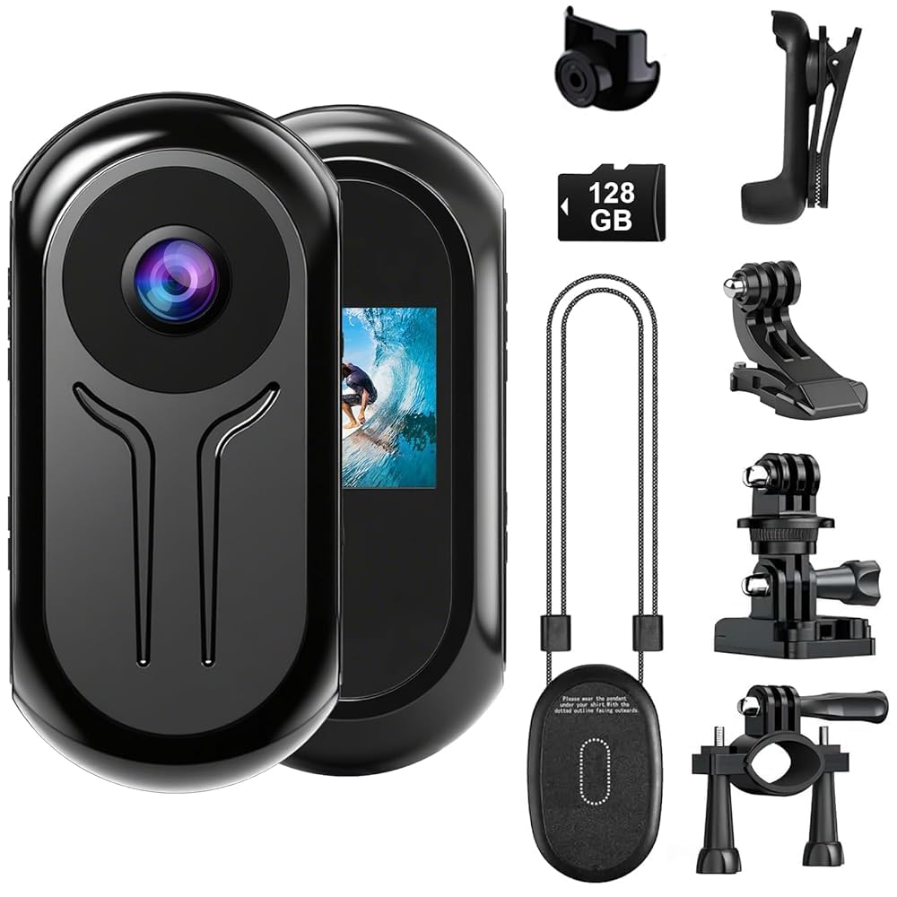 OBEST Mini Thumb Action Camera POV 1080P with 128GB Card Bike Helmet Camera Body Camera, Portable Vlogging Cam, Wearable for Motorcycle, Work, Travel, Pet Walking, Night Vision Not Waterproof Black
