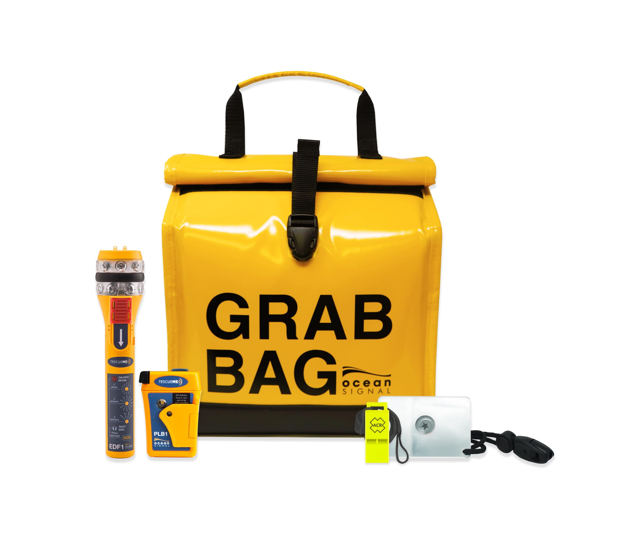 Ocean Signal rescueMe PLB1 Safety Kit with EDF1 Electronic Distress Flare, Personal Locator Beacon with Waterproof Grab Bag, Whistle, and Signal Mirror for Marine Offshore and Boating Safety