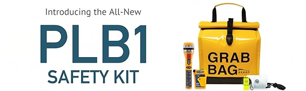 What's Included — PLB1 Beacon, EDF1 Flare, Buoyant Grab Bag, and Rescue Tools