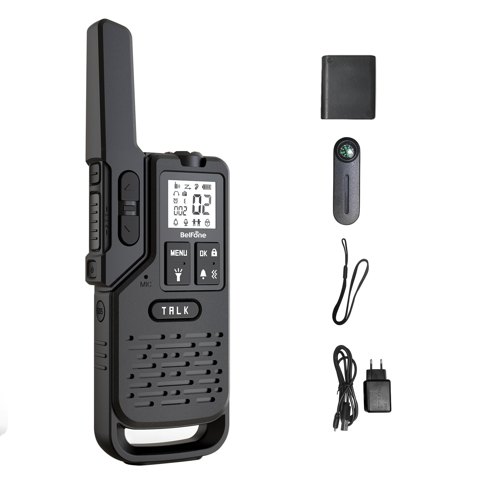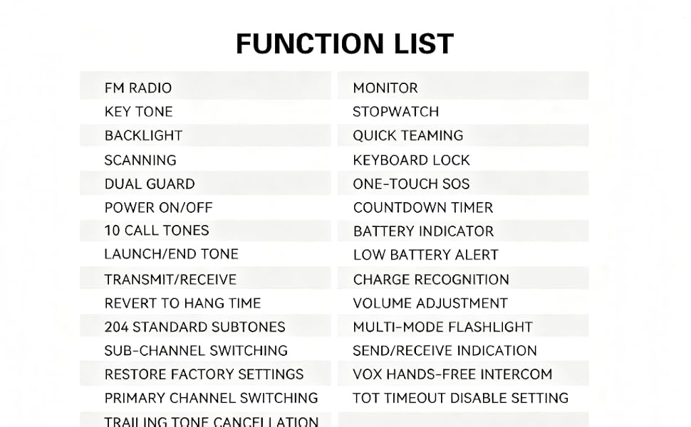 - Advanced Outdoor Utility Package: Beyond standard two-way radio functionality, this unit integrates:High-lumen LED emergency flashlight,Precision digital compass (integrated into belt clip),NOAA weather radio receiver,Countdown timer/stopwatch functionality.Ideal for outdoor professionals, event staff, and adventure teams requiring dependable field communications