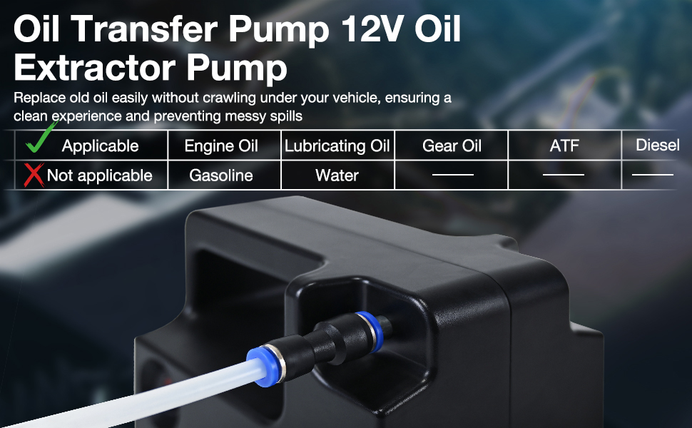Rigorous Quality Testing & Mess-Free Oil Changes:Every pump undergoes strict performance testing before shipping—we even add a few drops of light oil to ensure smooth operation (any minor residue you see is just from testing, not prior use). The oil extractor pump lets you drain old engine oil quickly through your vehicle’s dipstick tube—skip the creeper and avoid spills. Perfect for DIYers and pros who want a cleaner, faster way to service cars, trucks, or equipment.