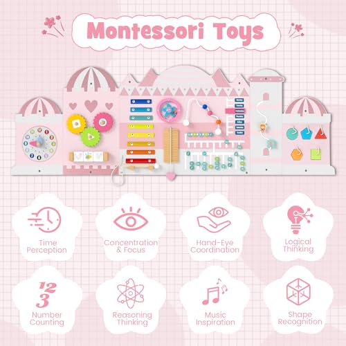 - Ideal Gift for Kids: Boasting a dreamy castle shape, this Montessori busy board works as both an engaging educational toy and a great helper for parent-child interaction, helping create precious quality time together. It makes a perfect gift choice for children over 3 years old