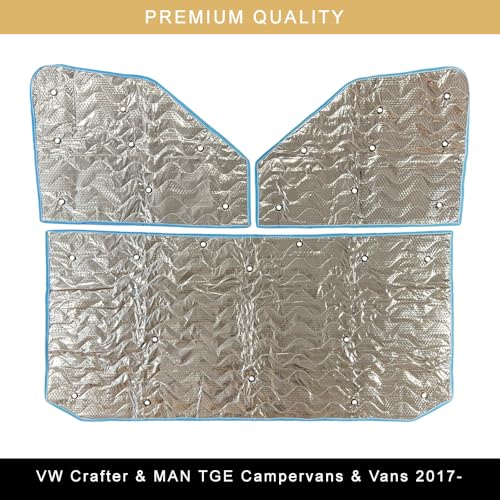 OLPRO’s Internal Thermal Blinds are tailored for the VW Crafter Campervans and Vans. The three piece set covers the front windscreen and the two front cab side windows. They’re easily fitted with suction cups provided. The set is perfect for privacy and will cool the vehicle in hot weather and keep it warm in cold weather. Key features of the VW Crafter and MAN TGE Internal Thermal blinds: 3 Piece Set – 1 Front Windscreen Blind and 2 Side Cab Window Blinds Suction Cups Provided for Fitting Tailored to fit VW Crafter and MAN TGE Campervans and Vans 2017 onwards Keeps the van cool in summer Keeps the van warm in winter Reflective Outer Skin Blue Trim