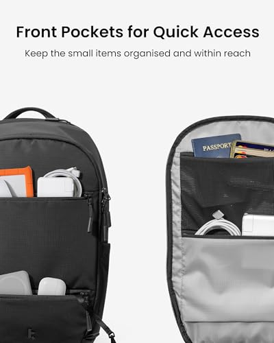 32L Spacious & Well-Organized: Clamshell opening makes packing and access effortless. The front compartment organizes daily essentials, while the back keeps your laptop within easy reach. Two front pockets and a top pocket store frequently used items for quick access, multiple inner pockets for keeping everything else neatly sorted and visible at a glance