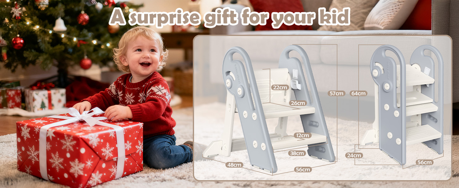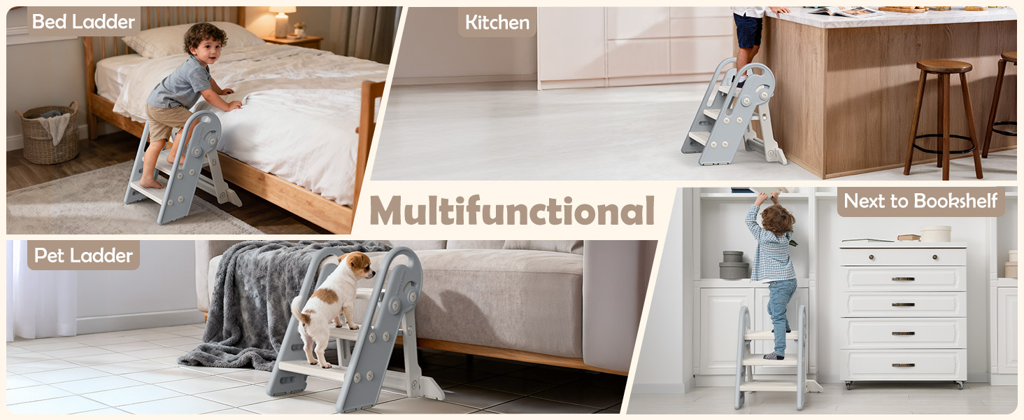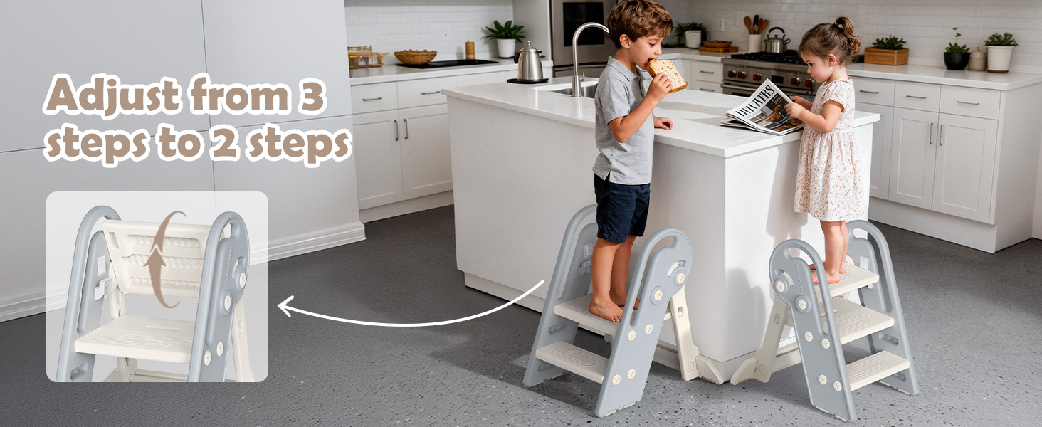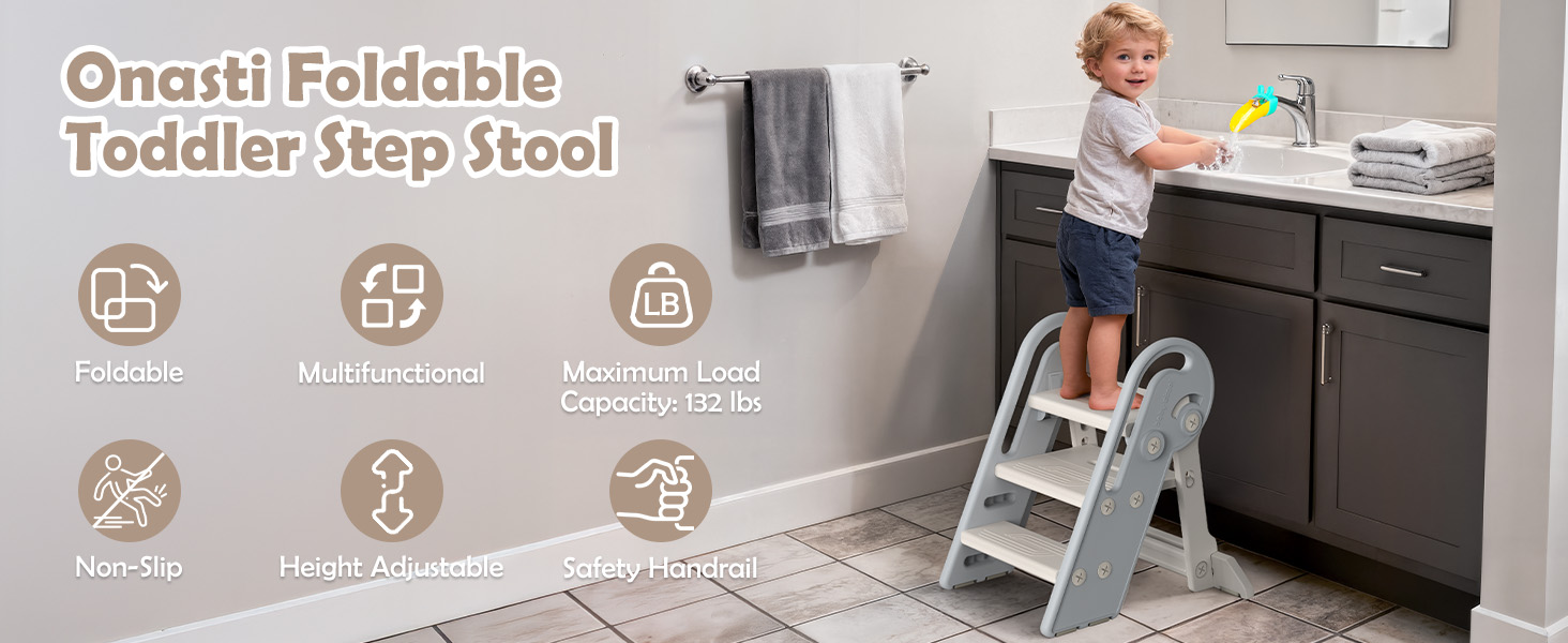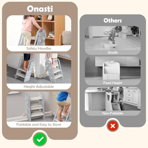 Onasti Foldable Step Stool for Kids, Adjustable 3 Steps