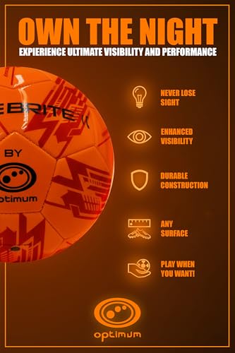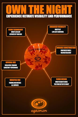 Optimum LED Light-Up Football Ball Size 5 – Glow in The Dark Soccer | Motion Activated with Auto-Off | Durable Water-Resistant Night Play | Pump & Spare Batteries Included | UK Brand