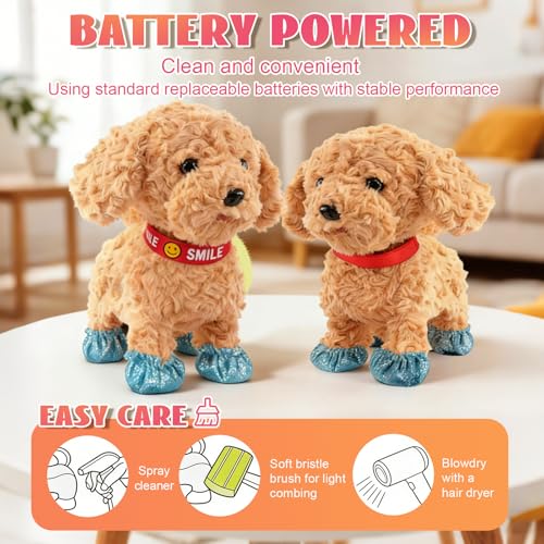 【Easy to Use】Simply insert 3 AA batteries (not included) into the dog's belly, turn it on, and this toy dog will walk, bark, and wag its tail like a real dog, keeping your child entertained. (Model A is battery powered; Models B-N are USB rechargeable)