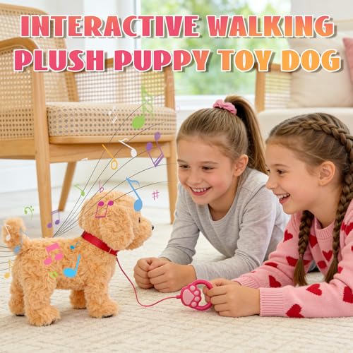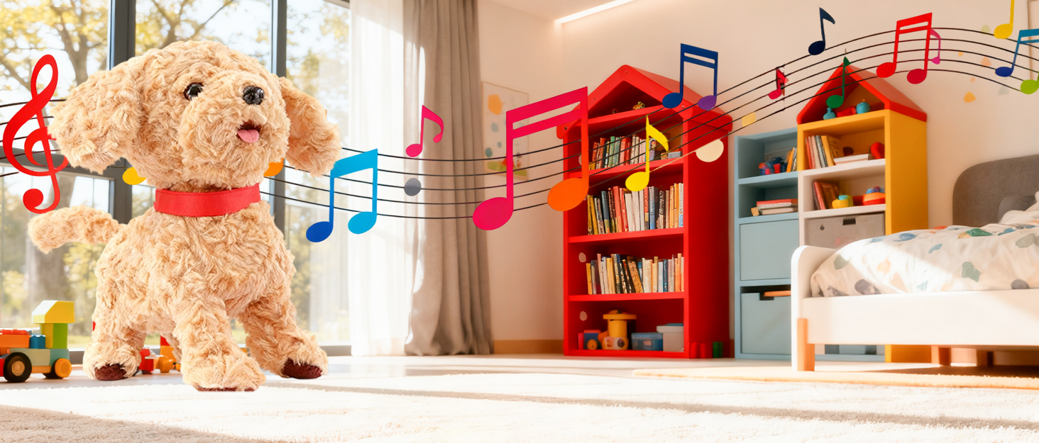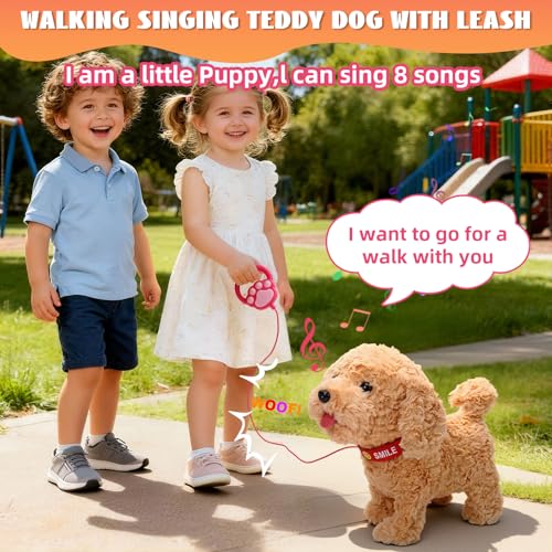 ✨️【Fun Interactive Experience】The toy dog comes with a remote-controlled leash for easy gripping by children. Pressing the button on the remote makes the toy dog walk and sing; pressing it again stops it. When you pet its head, the toy dog will lift its head and wag its tail, providing companion for children.