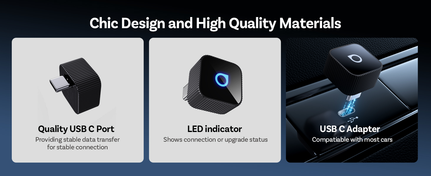 Compact and Lightweight Design for Convenience: This wireless adapter has a mini size (only 7.6 g) that fits perfectly in any car setup. Its compact design features vertical grooves that enhance the tactile feel, giving it a sleek and refined look while keeping your car interior tidy and free of cables.