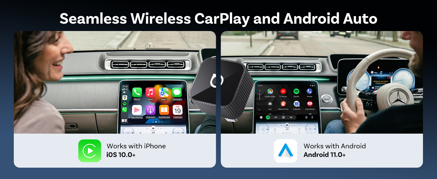 Effortlessly Upgrade Wired Systems to Wireless: Transform your car’s factory‑installed wired CarPlay or Android Auto system into a wireless experience with the OTT OCAST Mini Slim. It supports dual‑channel functionality, allowing you to connect both wired CarPlay to wireless CarPlay and wired Android Auto to wireless Android Auto with ease.