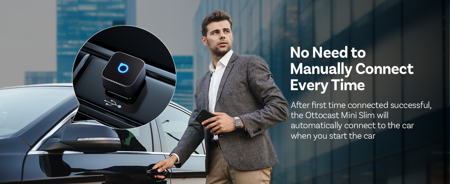 After the first pairing, the OTTOCAST MINI automatically reconnects in about 5 seconds.