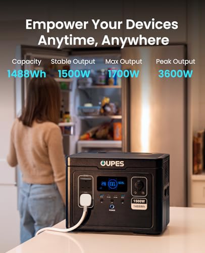 - [Power Your Essentials] – OUPES Exodus 1500 portable power station features 3x 1500W (1700W boost, 3600W peak) AC outlets. Its powerful output lets it work with most devices, powers appliances, tools, and devices during outages or outdoor adventures – such as fridges, coffee machines, microwaves, electric grills, cutting machine, circularsaw, etc.