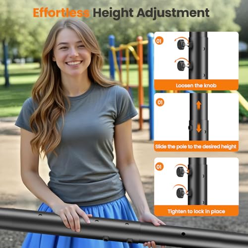 - Easy Height Adjustment: Adjusting the height is quick and tool-free: simply loosen the knob, slide the pole to your desired level, and then tighten it to lock in place. Whether you're training or just having fun, the right height is always within reach.