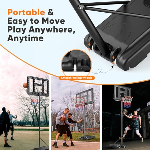 - Smooth-Rolling & Portable: Equipped with built-in wheels, this basketball hoop system is easy to relocate—perfect for your backyard, driveway, garden, or gym. Simply tilt and roll to bring the game with you wherever you go.