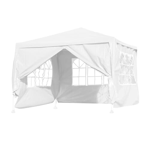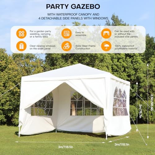 Outdoor Event Gazebo Tent, 3x3M Waterproof Party Marquee with 4 Side Panels,Which Have 3 Clear Windows panels And One Zip Panel (White)